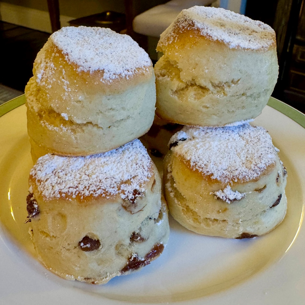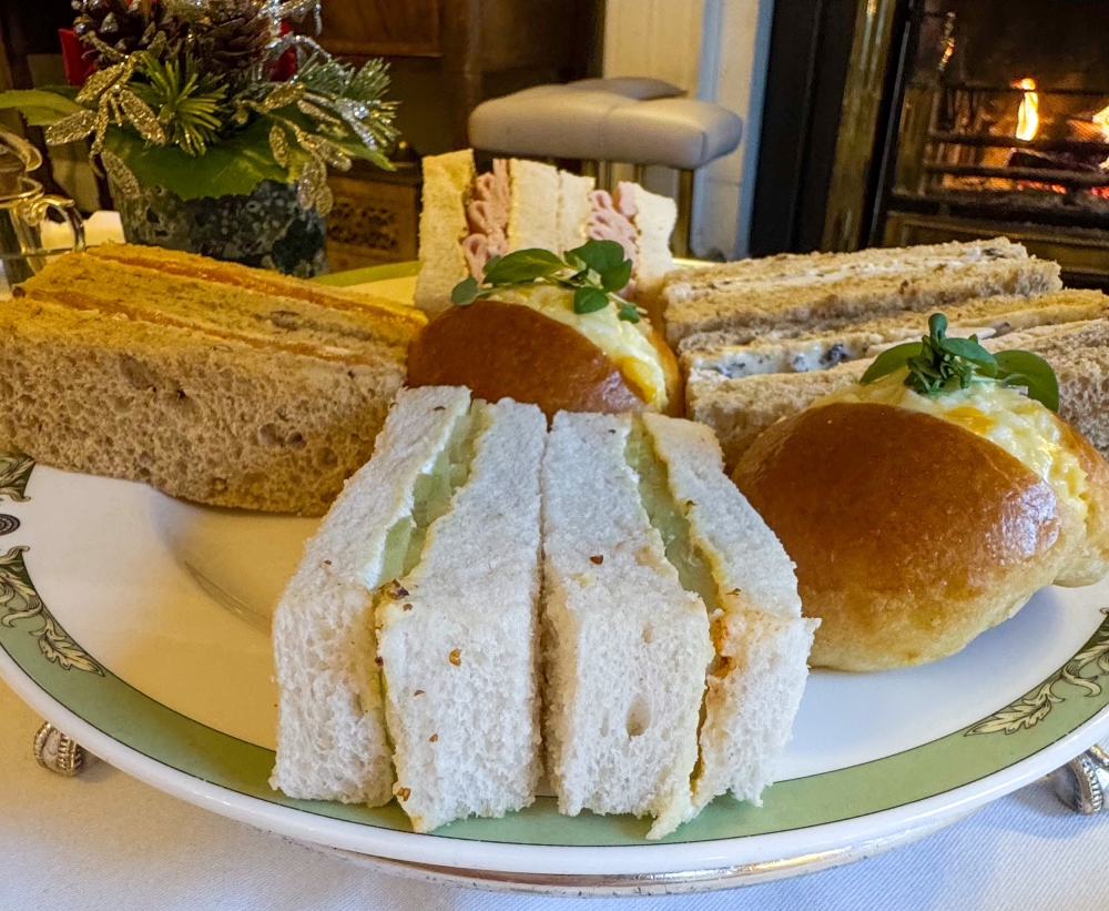 The sandwich tier featured five selections: Burren Smokehouse smoked salmon with horseradish cream on wholegrain bread; loin of ham with Pommery mustard and tarragon on white bread; Irish corn-fed chicken breast with truffle mayonnaise on wholegrain bread; hen’s egg mayonnaise on a brioche bridge roll; and organic cucumber with smoked paprika, mint, and Glenilen yoghurt on white bread. Each of the sandwiches were excellent – unfussy, well-balanced, and carefully crafted.